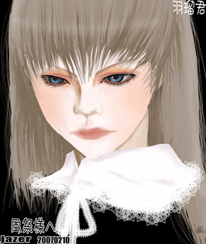 日記友達の豊条真紀さんにクリスマスカードを送らせていただきまして、お礼にと阿朱を書いて頂きました(^_^)うちの阿朱、着たきりスズメなのでダッフルコートとかマフラーとか着せてあげたいなぁ・・・なんて思ってしまいました。暖かな雰囲気がとても可愛くて素敵です。本当にありがとうございます。