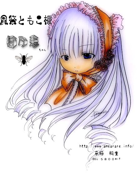 桐生さんからBBSの5800HITのキリ番で描いていただいた栖乃兎のイラストです。可愛いイラストだなぁ・・・と思いながらサイトを拝見していたのですごく嬉しいvvそして、自分の人形を絵に描いていただくと気持ちはもちろん、他の方が見て、どんな個性があるのか・・・という事もすごく良く解って大好きだったりします本当にありがとうございます(*>_<*)